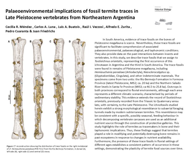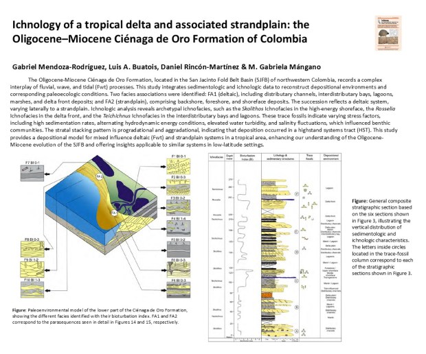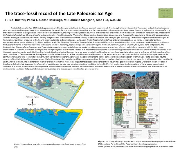 Ichnology is the study of traces, such as burrows, trackways, and borings, created within the substrate by living organisms. It is an increasingly important field, having recently been transformed into a multifaceted science at the crossroads of many disciplines. Our research group, based out of the University of Saskatchewan in Saskatoon, Canada, delves into the world of ichnology across the entire geologic time scale. Headed by Dr. Luis Buatois and Dr. Gabriela Mángano, our group examines novel applications of ichnology to geologic problems, both new and old.