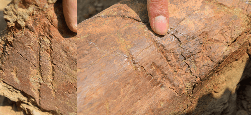Edmontosaurus limb bone with tooth traces. Photo by Jack Milligan