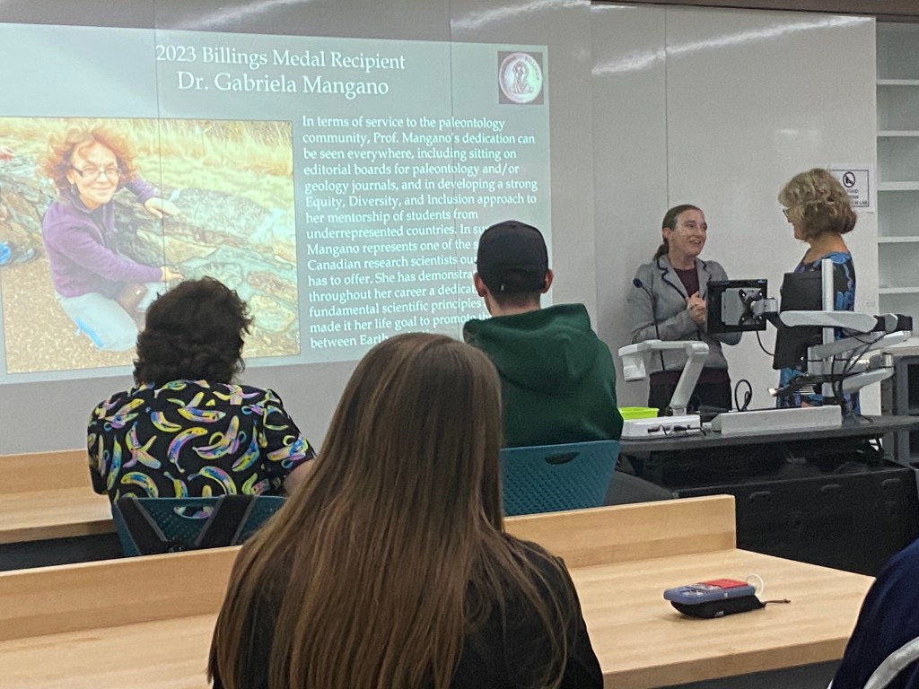 The 2023 Canadian Paleontology Conference was recently held at the University of Toronto Mississauga in Mississauga, Ontario, held by the Geological Association of Canada’s Paleontology Division (GAC PD). Our own Gabriela Mángano was honoured at the conference as the 2023 recipient of the Billings Award! This is an award given to those who have made an outstanding long-term contribution to any aspect of Canadian paleontology or by a Canadian to paleontology.